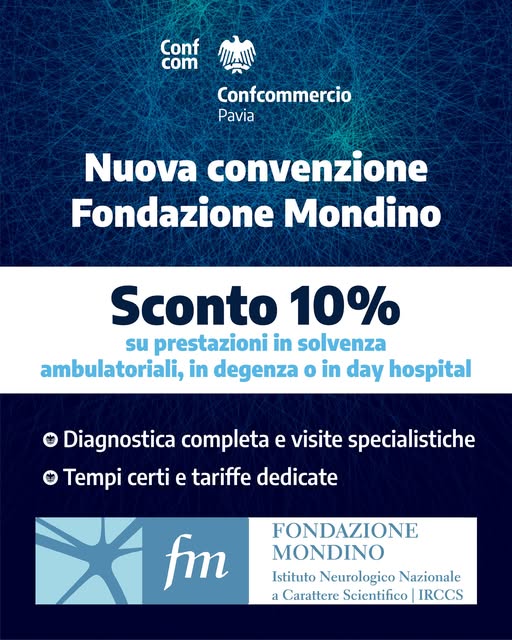 È attiva una nuova convenzione con la Fondazione Mondino: -10% sulle prestazioni in solvenza (visite ed esami, degenze e day hospital), con accesso a prestazioni di altissimo livello su un’ampia gamma di servizi sanitari.